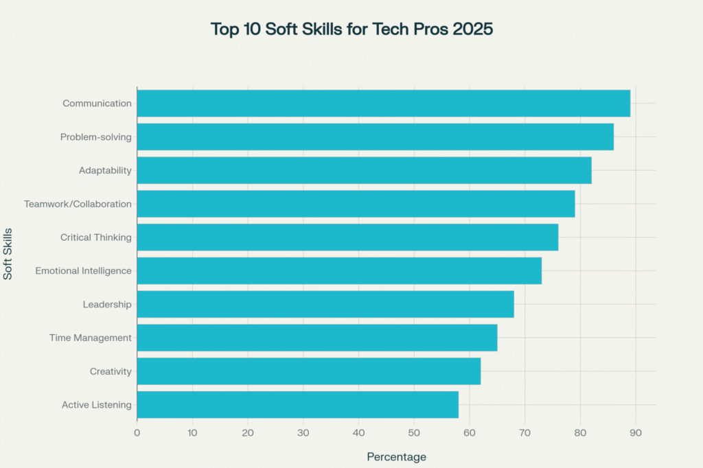 Over 90% of top performers in the workplace have strong soft skills, especially emotional intelligence. Technical know-how is not enough; communication, empathy, and adaptability help manage change and lead teams through uncertainty.